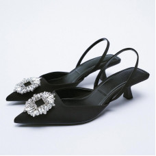 ZA Shoes Women's Shoes Sandals 2021 Summer Mid Low Heels Party Wedding Women's Pumps Sequined Dimond Documentary Shoes